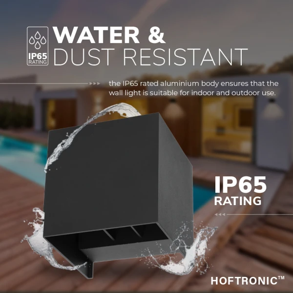 De Kansas V2 wandlamp schijnt een aangenaam warmwit licht van 3000 graden kelvin. Dit doet de lamp zowel naar boven als naar onder waardoor je een zeer gaaf effect op de muur kunt creëren. Uniek in de markt is de hoge waterdichtheid van onze Kansas wandlamp. Deze is immers IP65 waterdicht en stofdicht. Hierdoor hoef jij je geen waken te maken over defecten door vocht en/of stof. De binnenkant van de buitenlamp is gemaakt van roestvrij aluminium en afgewerkt met een extra dikke vochtbestendige en UV-bestendige AKZO-Nobel poedercoating. Hierdoor roest de wandlamp niet en blijft deze zijn prachtige diepzwarte kenmerk houden.