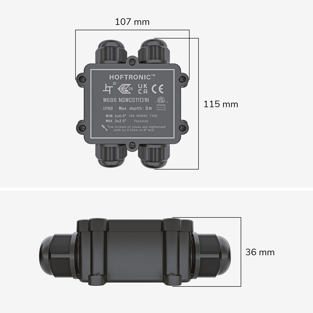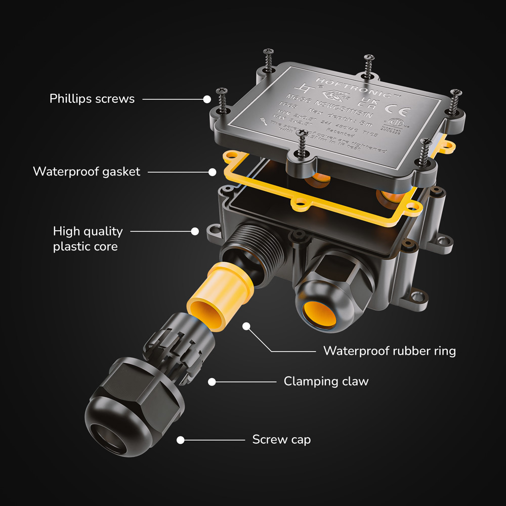Met deze waterdichte lasdoos maak je in een handomdraai een veilige en waterdichte verbinding. Je hoeft geen mof met hars meer te gebruiken; dit systeem is vaak sneller en gemakkelijker te installeren dan klassieke verdeeldozen. Wil je de lasdoos in de aarde gebruiken? Zorg er dan voor dat je hem op extreem 8 meter diepte installeert.