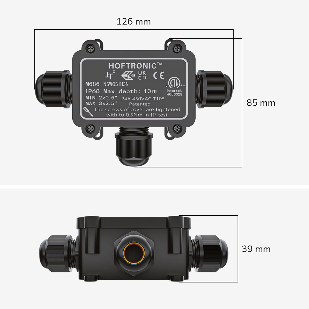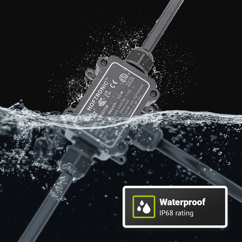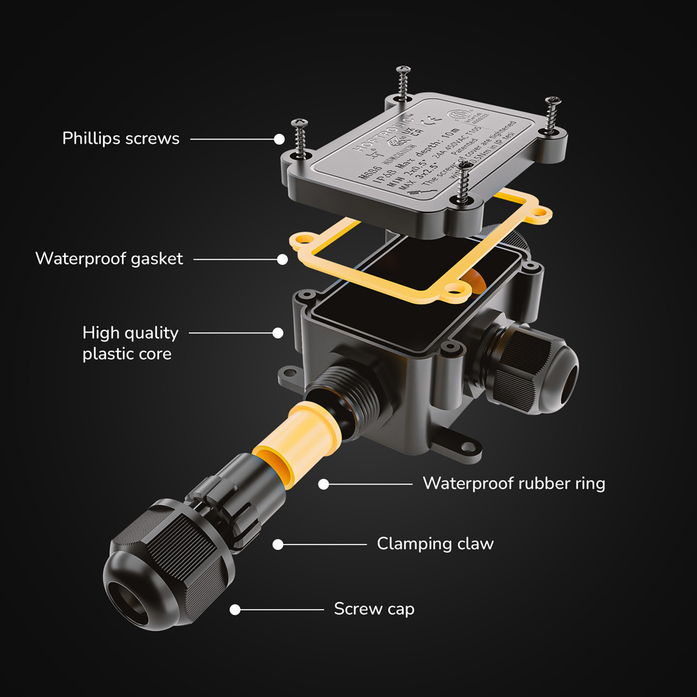 Met deze waterdichte lasdoos maak je voor je het weet een veilige en waterdichte verbinding. Je hoeft geen mof met hars meer te gebruiken; dit systeem is veel sneller en gemakkelijker te installeren dan klassieke verdeeldozen. Wil je de lasdoos in de aarde gebruiken? Zorg er dan voor dat je hem op extreem 10 meter diepte installeert.