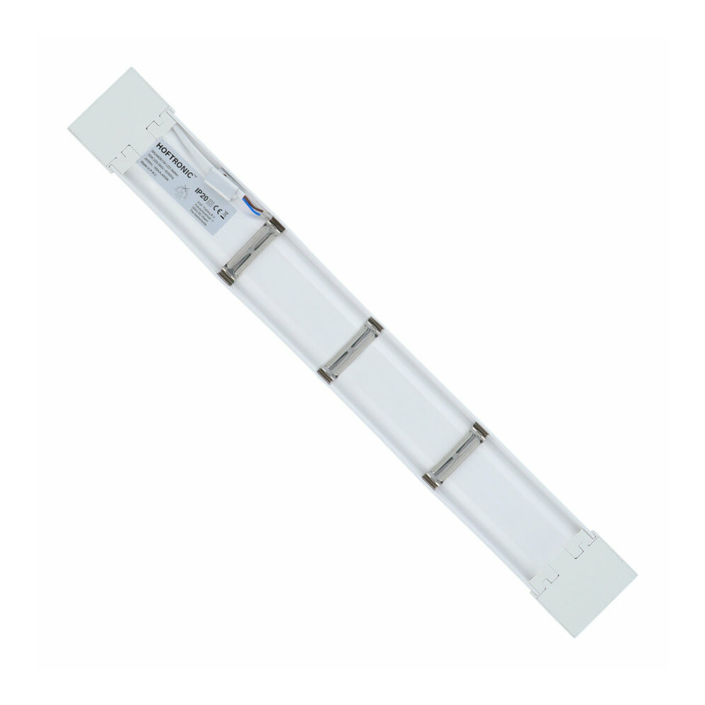 Deze ultradunne (2,5 cm) LED-batten is uitgerust met de nieuwste SMD LED-chiptechnologie die een daglicht-witte lichtkleur geven van 6500K. Deze 50 watt LED-batten is een opbouwarmatuur die volmaakt is voor ruimtes met een beperkte plafondhoogte. De LED-batten is ontwikkeld van kunststof en dankzij de IP20-waarde geschikt voor hanteer binnenshuis in droge ruimtes. Het monteren van de LED-batten is zeer simpel met de meegeleverde montageklemmen. De montageklemmen monteer je op de gewenste plek waarna je de lamp in simpelweg in de montagebeugel klikt. De LED-batten is voorzien van een 75 cm lange 2-aderige kabel met vertinde draadeinden. Met behulp van de meegeleverde quick-connector sluit je de lamp simpelweg aan op de 220 V-voeding.