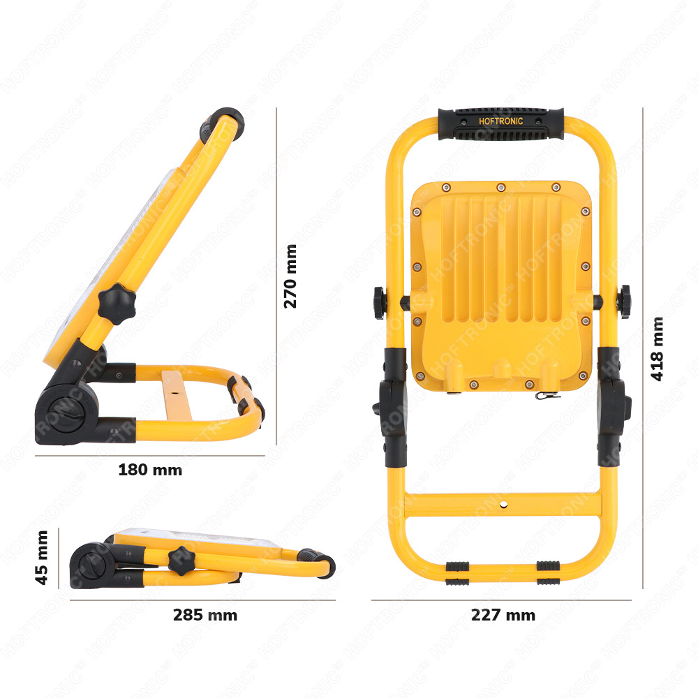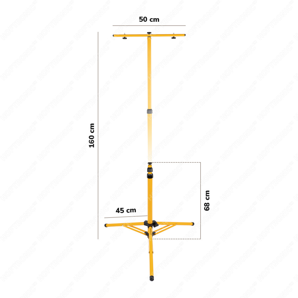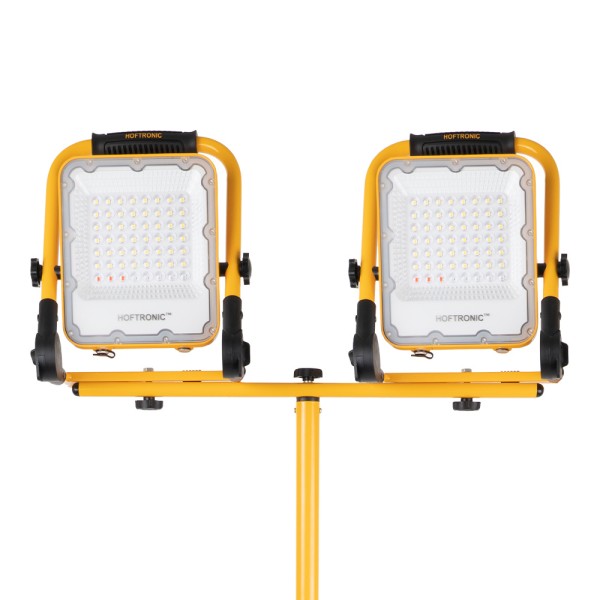 Dit speciale LED breedstraler statief van HOFTRONIC is een een landelijk statief bijzonder ontwikkelt voor het monteren van breedstralers, bouwlampen en werklampen. Het statief is standvast door de drie poten welke oppassen dat het statief op iedere ondergrond zeer behoorlijk staat. Hierbij is tevens rekening gehouden met zeer gladde vloeren. De drie poten van het statief hebben een verdikte rubber welke waakt dat het statief een antislip werking heeft en niet schuift ten tijde van het werken. Het statief wordt gebracht met 2 kwalitatieve bouwlampen op accu met iedereen een accu van vijf.000 mAh. Het statief kan traploos in hoogte worden versteld tot een hoogte van optimaal 160 centimeter, zo is het statief dus voor meerdere werkzaamheden inzetbaar. Daarnaast is het statief uitmuntend bekwaam voor transport. Het statief kan totaal worden ingeschoven, waardoor deze makkelijk in je auto of werk bus ressorteert. De in het oog springende gele kleur van het statief waakt ervoor dat deze opvalt tijdens werkzaamheden. Het optimale draagvermogen van het statief is 20 kg.