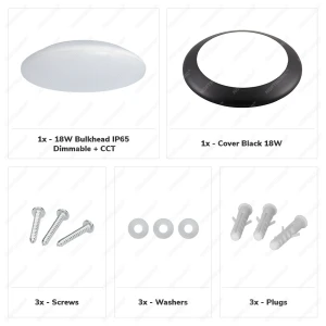 De plafondlamp wordt standaard bezorgd in het wit, maar met een additionele verwisselbare ring kun je eenvoudig de kenmerk van de lamp veranderen naar je gewenste kenmerk. Deze bulkhead wordt dus gebracht met een zwarte cover ring die je om het armatuur moet plekken.