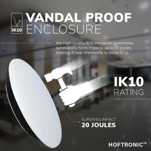 De hoge waterdichtheid en IK-waarde (vandalismebestendig) zorgen ervoor dat je deze LED bulkhead kunt gebruiken in publieke buitenruimten. Door de hoge lichtopbrengst van 2600 lumen helpt deze bulkhead bovendien bij het beschermen van je woonruimte tegen dieven.