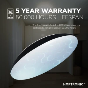 Deze LED bulkhead is van het hoogwaardige handelsnaam HOFTRONIC. HOFTRONIC is fabrikant en verkoper van LED verlichting. Hierdoor profiteer je van de scherpste prijs, hoogste kwaliteit en meest gewaardeerde garantievoorwaarden. Op deze LED plafondlamp ontvang je dan ook 3 jaar borgstelling. Defecten worden thuis deze 3 jaar gratis afwisselen.