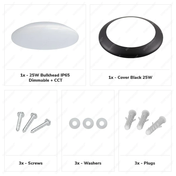 De plafondlamp wordt standaard bezorgd in het wit, maar met een additionele verwisselbare ring kun je simpelweg de kleur van de lamp veranderen naar je gewenste kleur. Deze bulkhead wordt dus gebracht met een zwarte cover ring die je om het armatuur moet ruimtes.