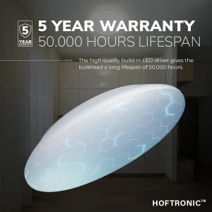 Deze LED bulkhead is van het superieure merk HOFTRONIC. HOFTRONIC is fabrikant en verkoper van LED verlichting. Hierdoor profiteer je van de scherpste prijs, hoogste klasse en eersterangs garantievoorwaarden. Op deze LED plafondlamp ontvang je dan ook 3 jaar garantie. Defecten worden thuis deze 3 jaar gratis substitueren.