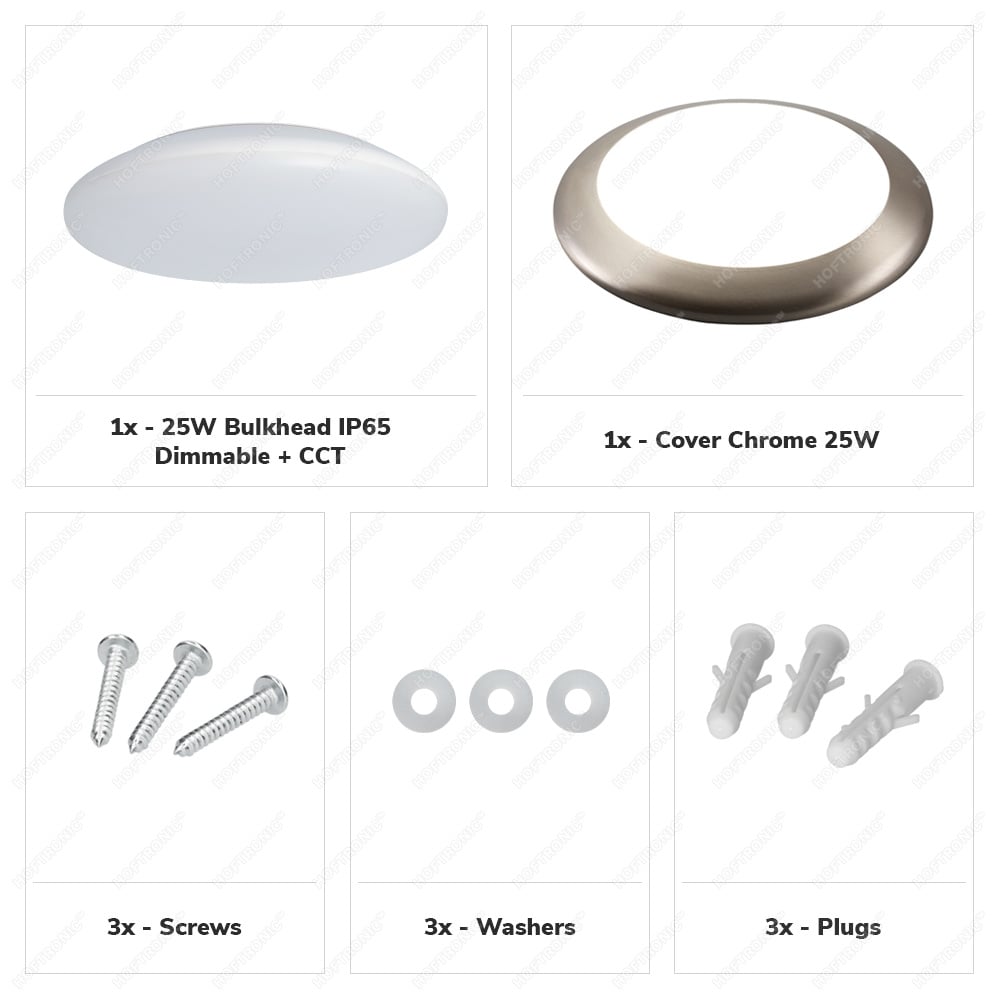 HOFTRONIC LED Bulkhead 38 cm – Plafondlamp – Wandarmatuur – 25W 2600 Lumen Dimbaar – CCT lichtkleur instelbaar – IK10 – Chroom – IP65 Waterdicht