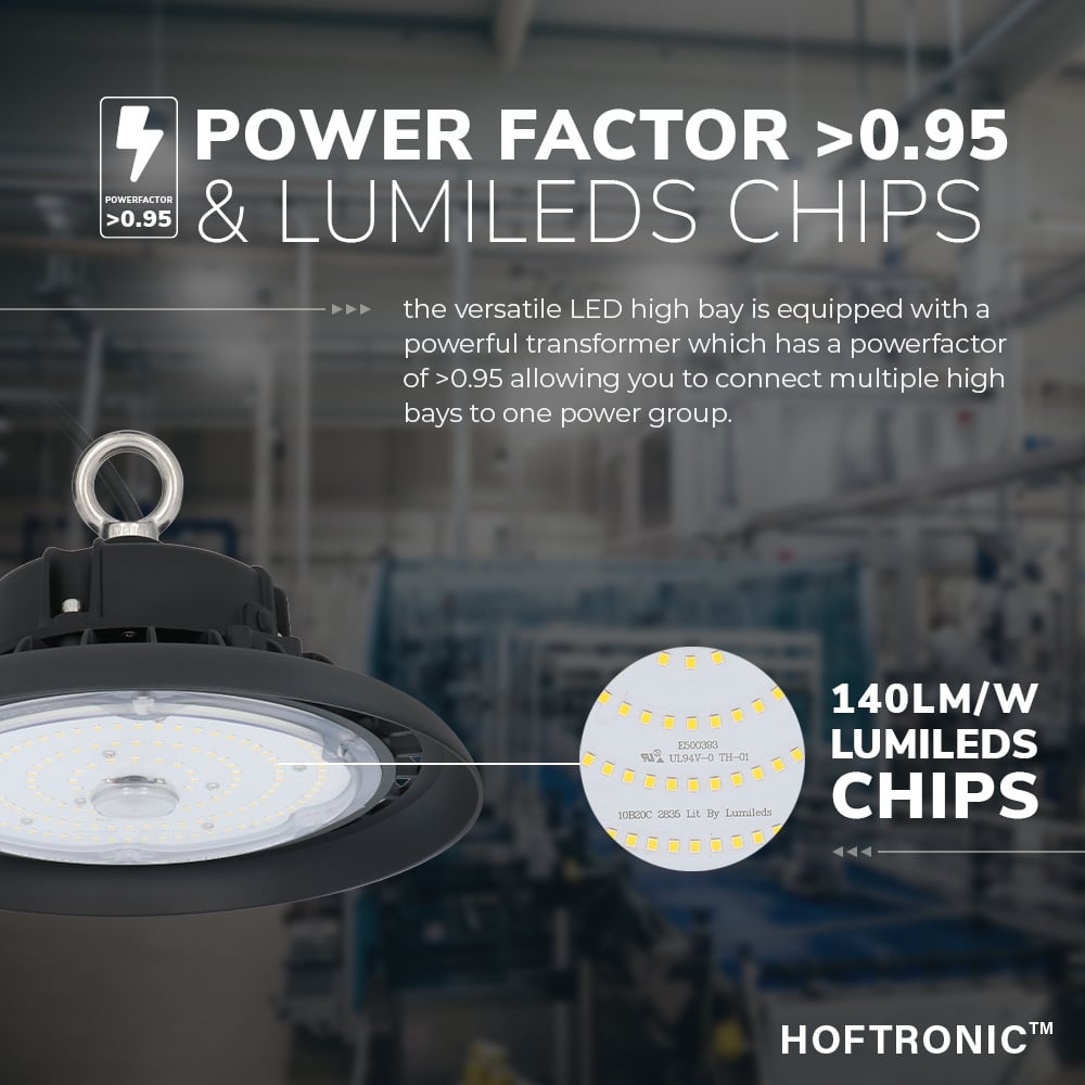 De LED chips welke er in deze LED Higbay zijn toegepast zijn originele LumiLEDs 2835 high lumen Leds. Deze LED’s hebben een hoge lichtopbrengst van maar liefst 140lm/W. Deze 100 Watt LED High bay geeft dan ook een totale lichtopbrengst van 14.000 Lumen. Door zorgvuldig gebruik te maken van de hoogste kwaliteit componenten ben je verzekerd van een minimale levensduur van 50.000 branduren en 5 garantie.