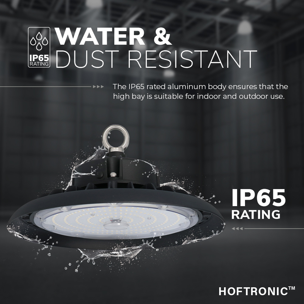 Deze veelzijdige LED High bay is uitgevoerd met een IP65 normering waardoor deze spatwater en stofdicht is en hierdoor uitmuntend kan worden gebruikt in vochtige ruimtes. Deze LED High bay is voorzien van een krachtige transformator welke een powerfactor heeft van >0.9, hierdoor kun je een grote hoeveelheid van deze High Bays op een groep aansluiten. Tevens is deze professionele LED High bay totstandgekomen met zeer krachtige LumiLEDs 2835 High lumen Leds welke 140 lumen per Watt afgeven. De lichtkleur van deze LED High bay is 4000K neutraal wit.