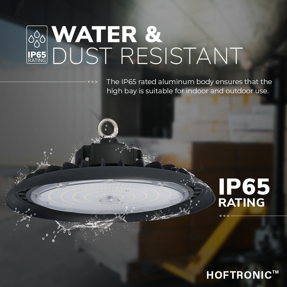 Deze veelzijdige LED High bay is totstandgekomen met een IP65 normering waardoor deze spatwater en stofdicht is en hierdoor uitstekend kan worden toepast in vochtige ruimtes. Deze LED High bay is voorzien van een krachtige transformator welke een powerfactor heeft van >0.9, hierdoor kun je een grote hoeveelheid van deze High Bays op een groep aansluiten. Tevens is deze professionele LED High bay uitgevoerd met zeer krachtige LumiLEDs 2835 High lumen Leds welke 140 lumen per Watt afgeven. De lichtkleur van deze LED High bay is 6000K daglicht wit.