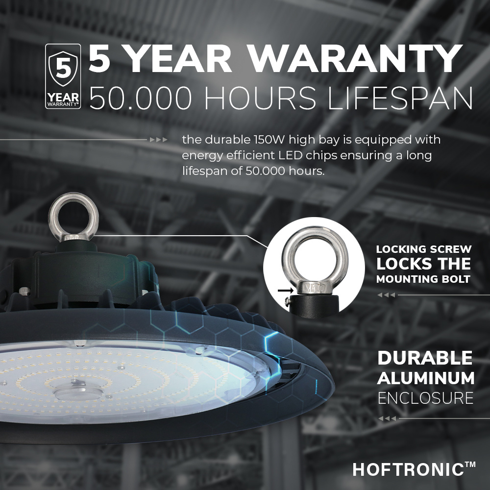 De LED chips welke er in deze LED Higbay zijn toegepast zijn originele LumiLEDs 2835 high lumen Leds. Deze LED’s hebben een hoge lichtopbrengst van maar liefst 140lm/W. Deze 200 Watt LED High bay geeft dan mede een absolute lichtopbrengst van 28.000 Lumen. Door precies gebruik te maken van de hoogste kwaliteit componenten ben je verzekerd van een minimale levensduur van 50.000 branduren en 5 waarborg.