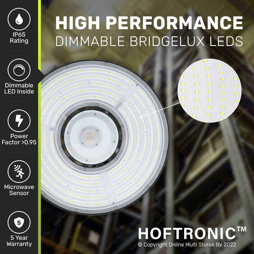 Op zoek naar een professionele hoogstraler? Deze LED High bay lamp is ideaal voor omgevingen als magazijnen, bedrijfshallen of werkplaatsen. Hij heeft een lichtopbrengst van maar liefst 200 lumen per Watt en met 30.000 lumen verlicht je hiermee eenvoudig alle forse en hoge vertrekken. Maak de High bay nu nog completer door deze set met onze speciale 2-in-1 sensor.