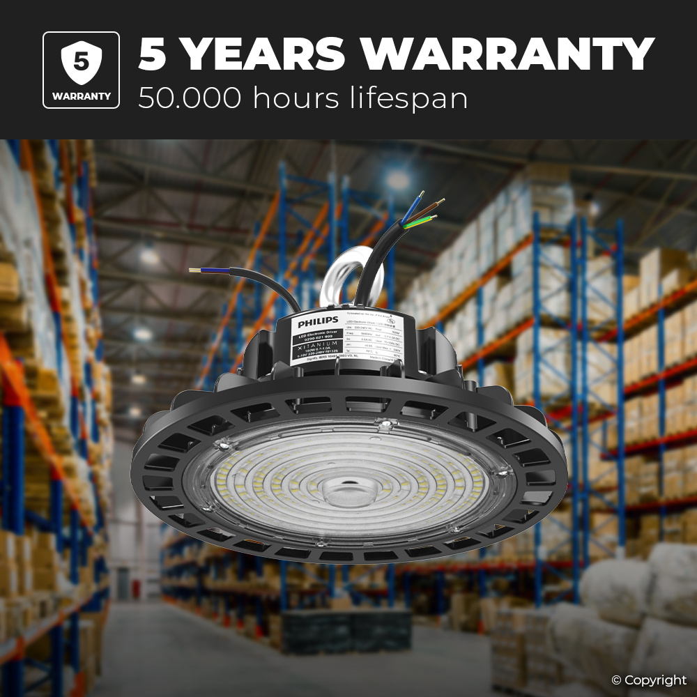 De lange levensduur van 50.000 branduren, de hoge CRI-waarde en hoge powerfactor maakt deze LED high bays zeer geschikt voor enorme projecten: