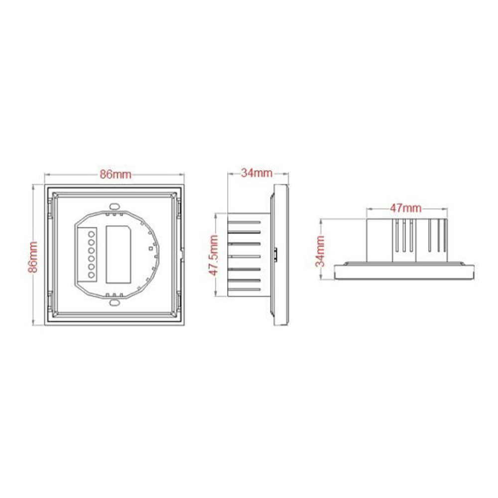 • Sluit volmaakt aan op de wand, afmetingen 86 x 86 x 32 mm