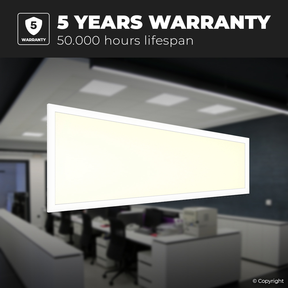 Het LED paneel is afgeladen flikkervrij. Dit maakt de verlichting betrouwbaar voor kantoren, werkplaatsen en magazijnen. Het LED paneel verbruikt slechts 36 Watt en creëert hiermee 4320 lumen aan licht met een 3000K warmwitte lichtkleur. Een efficiëntie van 120 Lumen per Watt. Dit LED paneel heeft een levensduur van 50.000 branduren – bij gemiddeld utiliseer komt dit neer op minimaal 20 jaar. Op dit LED paneel ontvang je 5 jaar garantie.