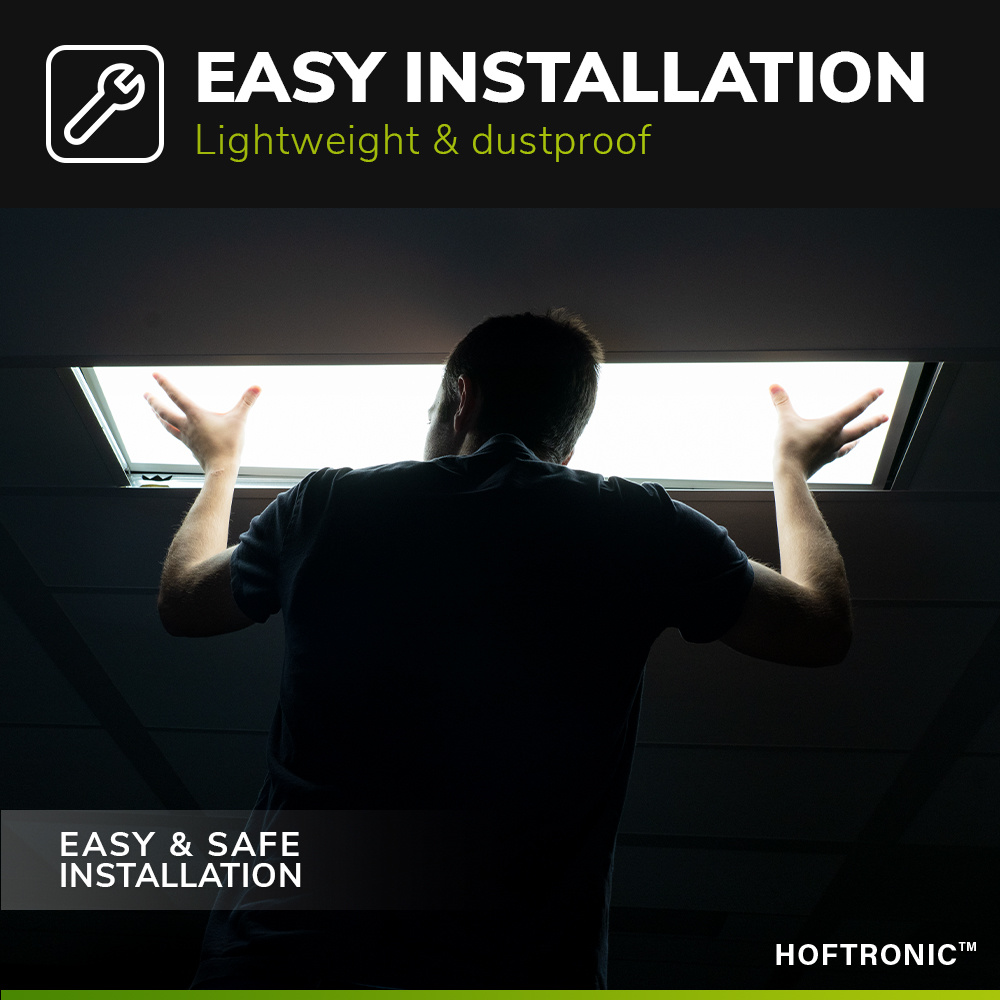 Deze LED panelen zijn bekwaam voor een systeemplafond en installeer je heel handzaam zelf, afgezien van dat je hier specifieke technische kennis voor nodig hebt. Je koppelt hiervoor het oude paneel los, sluit het LED paneel aan op de bijgeleverde driver en sluit het paneel weer aan op de stroom. Let wel op: doorgaans wordt het LED paneel zonder netsnoer bezorgd, dus als je het in een stopcontact wilt steken, bestel dan een netsnoer mee. Geen systeemplafond? Koop dan een opbouwframe om het LED paneel op te kunnen hangen.