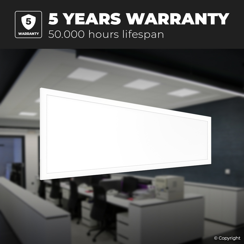 Dit LED paneel van 30×120 centimeter heeft een neutrale kleurtemperatuur van 4000K en een lichtopbrengst van 4320lm (120lm/w), behalve te flikkeren. Je bespaart om die reden met dit LED paneel ten opzichte van een TL lamp rijkelijk 75%. Dit paneel heeft daarbij een lange levensduur van 50.000 branduren, omgerekend is dit meer dan 20 jaar. Op dit paneel geven wij dan tevens met een gerust hart 5 jaar garantie.