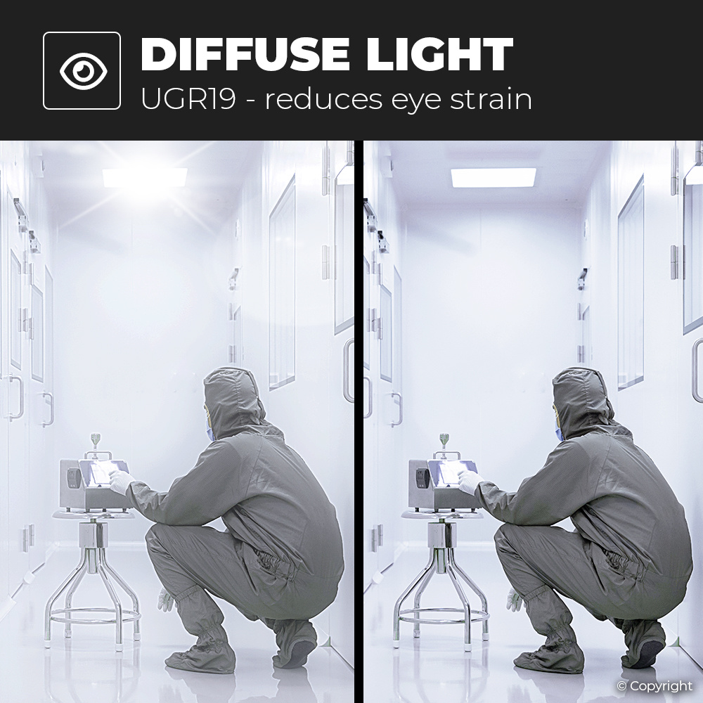 Dit LED paneel met smal frame van 62×62 cm heeft een neutraal witte kleurtemperatuur van 4000K en een lichtopbrengst van 4320lm (120lm/w), afgezien van te flikkeren. Het paneel heeft als uniek kleur dat de verlichting niet belastend is en verblinding of lichthinder tegengaat in een ruimte. Op dit paneel geven wij met een gerust hart 5 jaar garantie.
