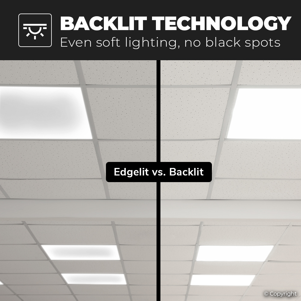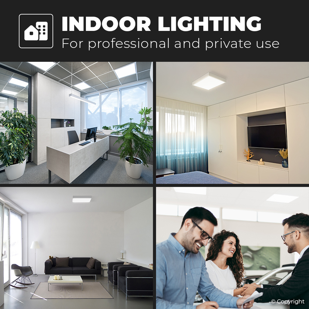 Dit LED paneel met smal frame van 62×62 centimeter heeft een neutraal witte kleurtemperatuur van 4000K en een lichtopbrengst van 4320lm (120lm/w), zonder te flikkeren. Het paneel heeft als exceptioneel kenmerk dat de verlichting niet belastend is en verblinding of lichthinder tegengaat in een ruimte. Op dit paneel geven wij met een gerust hart 5 jaar garantie.