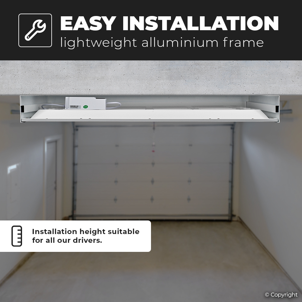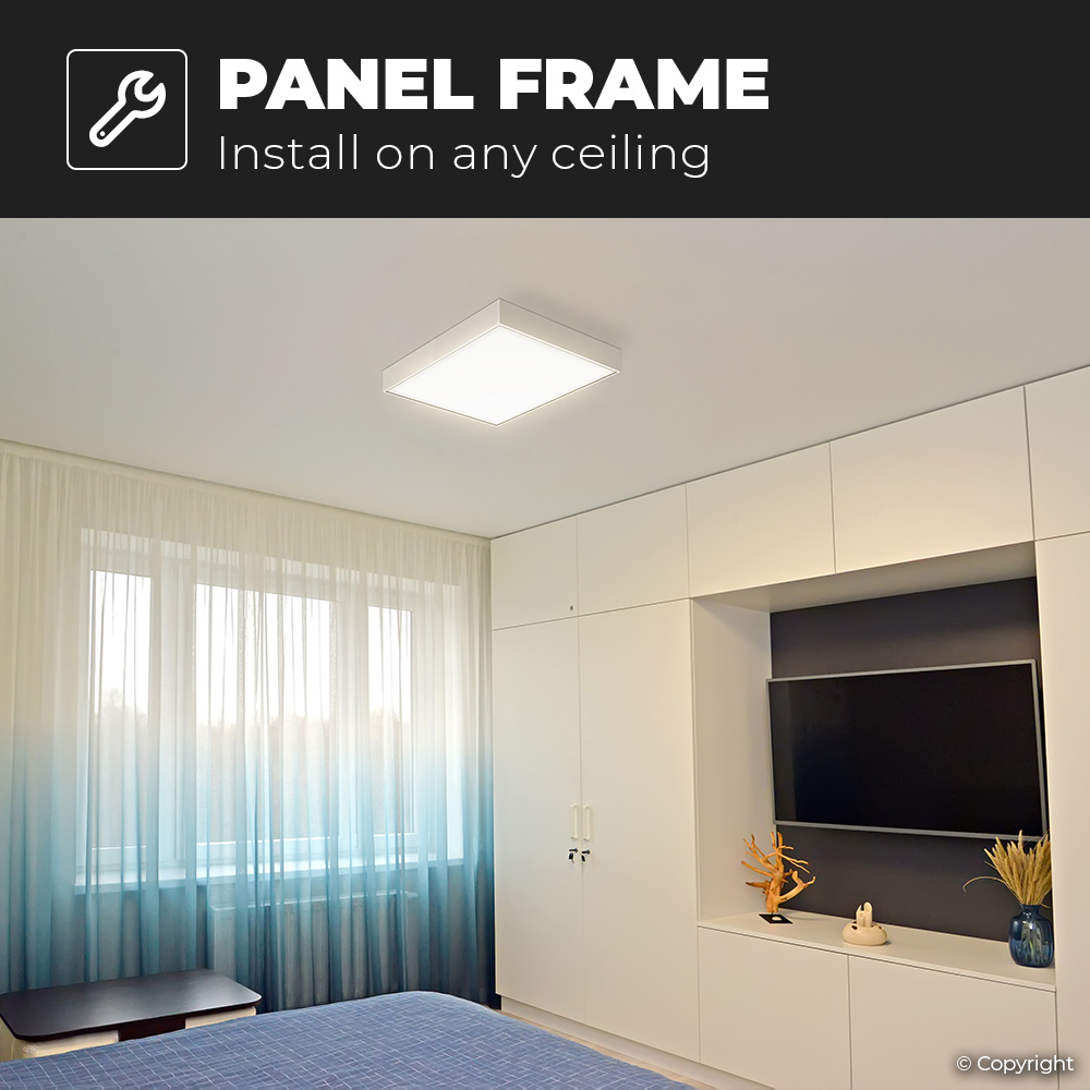 Het LED Paneel wordt geleverd inclusief een opbouwframe. Door het gebruik van een opbouwframe kun je de paneelverlichting installeren op een vast plafond, zo kun je genieten van je paneelverlichting met uitsluiting van dat je een systeemplafond hebt. Het stevig afgewerkte montageframe is zo gecreëerd dat er op de hoeken géén schroefverbindingen zitten, zo zie je geen lelijke schroeven meer zitten in het zicht. Door de hoogte van 6,3 centimeter van het frame kun je evengoed de transformator van het LED Paneel makkelijk wegwerken met uitsluiting van dat je extra ruimte nodig hebt.