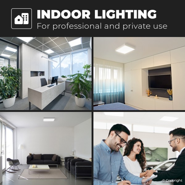Dit LED paneel met smal frame van 62×62 centimeter heeft een daglicht witte kleurtemperatuur van 6500K en een lichtopbrengst van 4320lm (120lm/w), met uitsluiting van te flikkeren. Het paneel heeft als uniek tint dat de verlichting niet belastend is en verblinding of lichthinder tegengaat in een ruimte. Op dit paneel geven wij met een gerust hart 5 jaar waarborg.