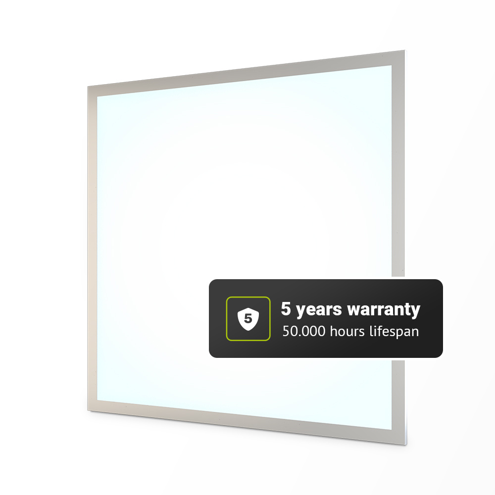Dit LED paneel van 62 x 62cm heeft een daglicht witte kleurtemperatuur van 6500K en een lichtopbrengst van 4860lm (135lm/w), zonder te flikkeren. Je bespaart hierom met dit LED paneel ten opzichte van een TL lamp riant 75%. Dit paneel heeft daarbij een lange levensduur van 50.000 branduren, omgerekend is dit meer dan 20 jaar. Op dit paneel geven wij dan ook met een gerust hart 5 jaar waarborg.