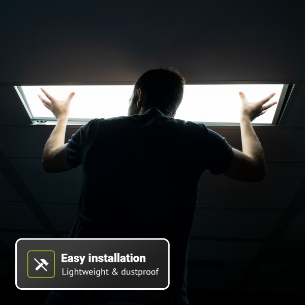 Deze LED panelen zijn prettig voor een systeemplafond en installeer je heel handzaam zelf, afgezien van dat je hier specifieke technische kennis voor nodig hebt. Je samenvoegt hiervoor het oude paneel los, sluit het LED paneel aan op de bijgeleverde driver en sluit het paneel weer aan op de stroom. Let wel op: standaard wordt het LED paneel behalve netsnoer bezorgd, dus als je het in een stopcontact wilt steken, bestel dan een netsnoer mee.