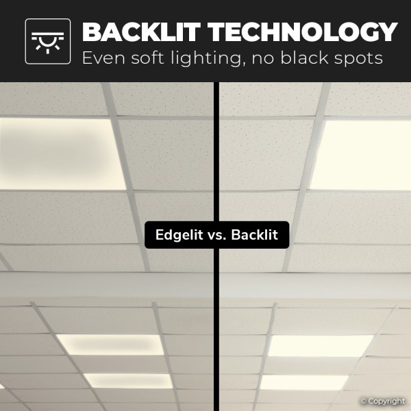 • Backlit technologie: Deze LED panelen zijn voorzien van de nieuwste backlit technologie. Dit zorgt voor een mooi diffuus licht. Je ziet geen donkere vlekken in het licht en het paneel verkleurt mede niet.