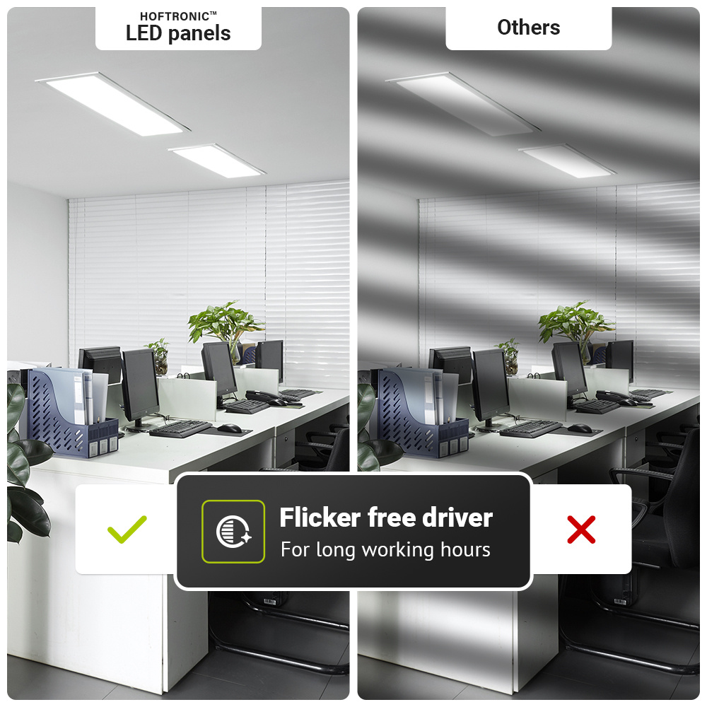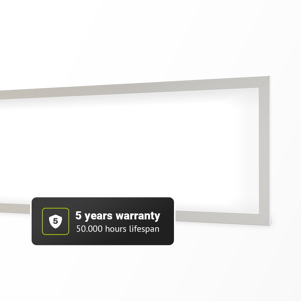 Dit extra dunne LED paneel met smal raamwerk van 30×120 centimeter heeft een neutraal witte kleurtemperatuur van 4000K en een lichtopbrengst van 4860lm (135lm/w), behalve te flikkeren. Het paneel heeft als uniek tint dat de verlichting niet belastend is en verblinding of lichthinder tegengaat in een ruimte. Op dit paneel geven wij met een gerust hart 5 jaar borgstelling.