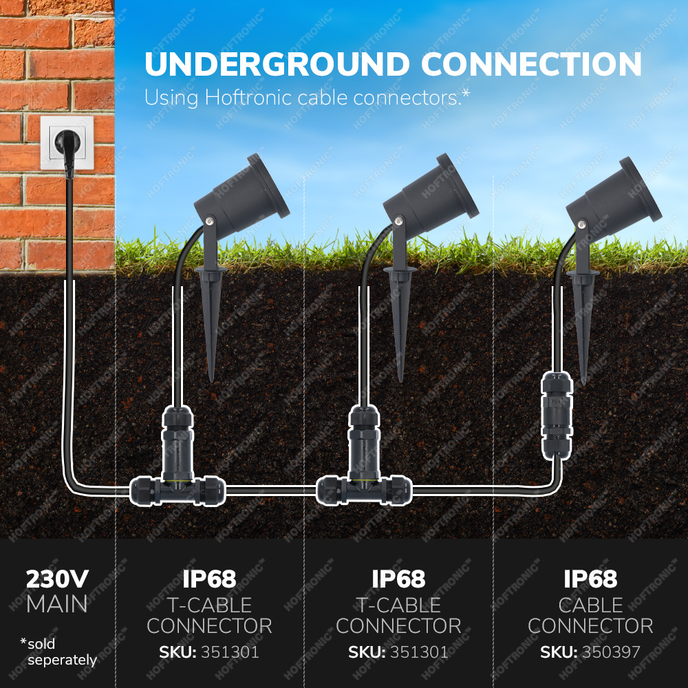 De prikspot is handig te monteren, steek de grondpin op de gewenste plek in de aarde en sluit de Sydney spot hierop aan. In het pakket ontvang je tegelijk een inbussleutel om de prikspot te installeren. Wij adviseren je onze IP68 kabelconnector ogenblikkelijk mee te bestellen om een uitstekende waterdichte aansluiting te kunnen realiseren met je stroomkabel. Het maken van een waterdichte verbinding van de kabels wordt hiermee een fluitje van een cent.