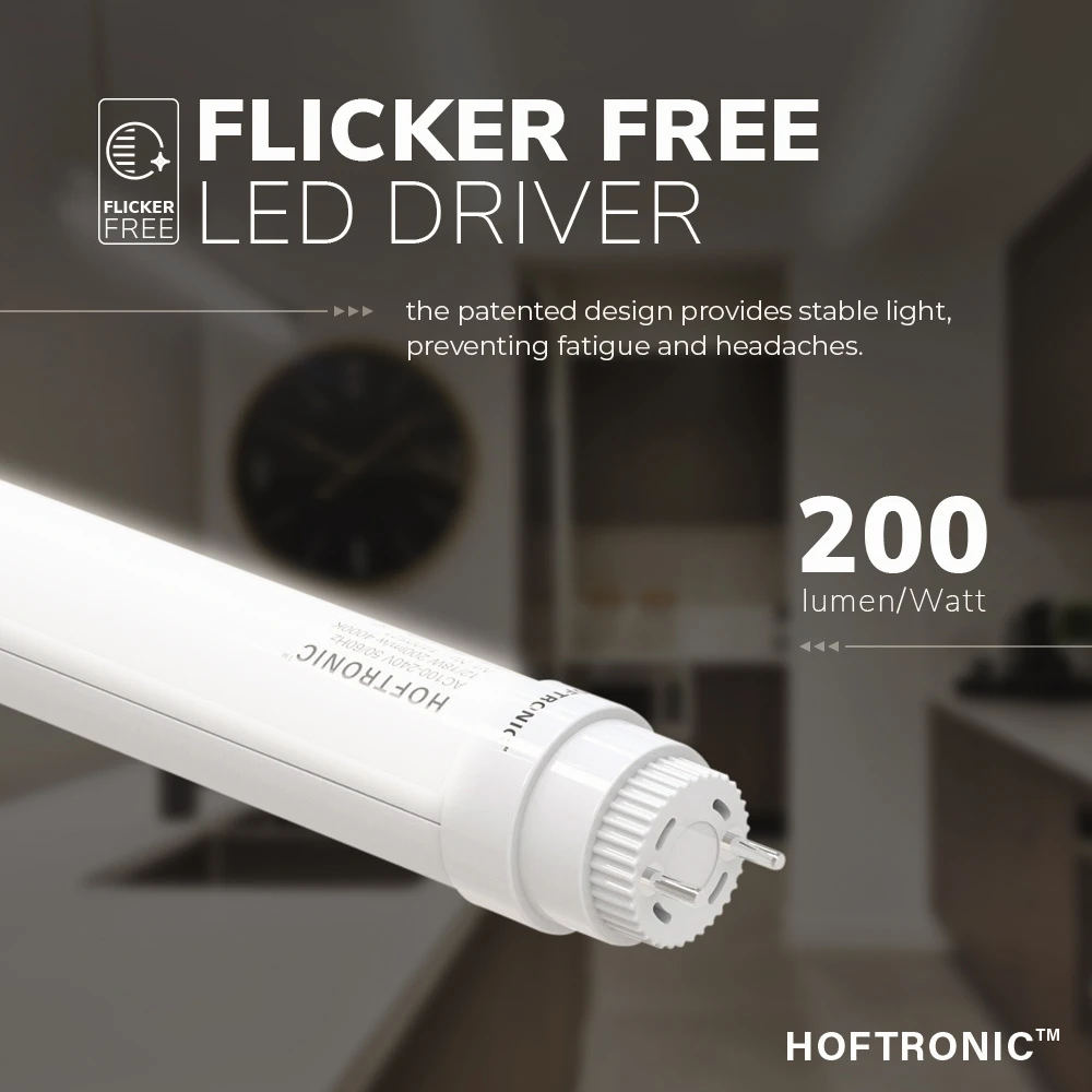 Door toepassing van de nieuwste LED Chip technologie en onze eigen gepatenteerde flikkervrije technologie zijn deze buizen algeheel flikkervrij. Dit is vooral van belang wanneer de buizen worden toegepast in ruimtes waarin mensen werken, bijvoorbeeld: kantoren of werkplaatsen. Uit onderzoek is namelijk gebleken dat hoewel we flikkeren van licht niet zien, dit kan zorgen voor hoofdpijn en vermoeidheid. Ook maakt dit de LED buizen bruikbaar voor stallen. Kippen en ander vee zien flikkeringen van licht namelijk wel.