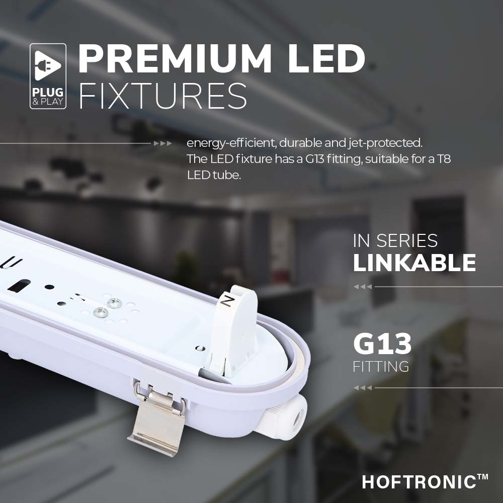 Deze LED IP65 waterdichte armaturen zijn ontzettend bruikbaar voor natte ruimten en kunnen evengoed ideaal buiten worden toegepast. Bij deze armaturen wordt een 30 Watt LED buis bijgeleverd, je hoeft dus geen buizen meer te bestellen. Met deze armaturen bespaar je tot wel 80% op jouw energiekosten ten opzichte van je klassieke verlichting. De installatie is erg simpelweg. Dat betekent dat er geen installateur nodig is voor de overstap op LED. De lampen gaan meer 50.000 uur mee. Daardoor hoef je ze meerdere jaren lang niet te vervangen en dalen jouw onderhoudskosten enorm. Deze waterdichte armaturen variëren je traditionele armaturen.