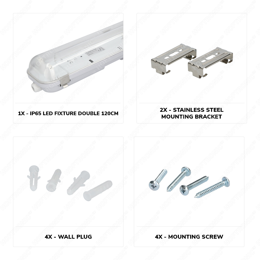 Het LED TL armatuur is afgeladen IP65 waterdicht. Dit waakt ervoor dat je de LED TL lamp ook kunt benuttigen in zeer vochtige plaatsen. Denk hierbij aan opslagplaatsen buiten, koelcellen en garages. De kap van de LED TL lamp wordt stevig op zijn plaats gehouden door RVS Clips. Deze roesten niet en hebben minder last van materiaalmoeheid, waardoor je nog jarenlang naar hartenlust kersverse LED TL buizen in dit armatuur kunt plaatsen.