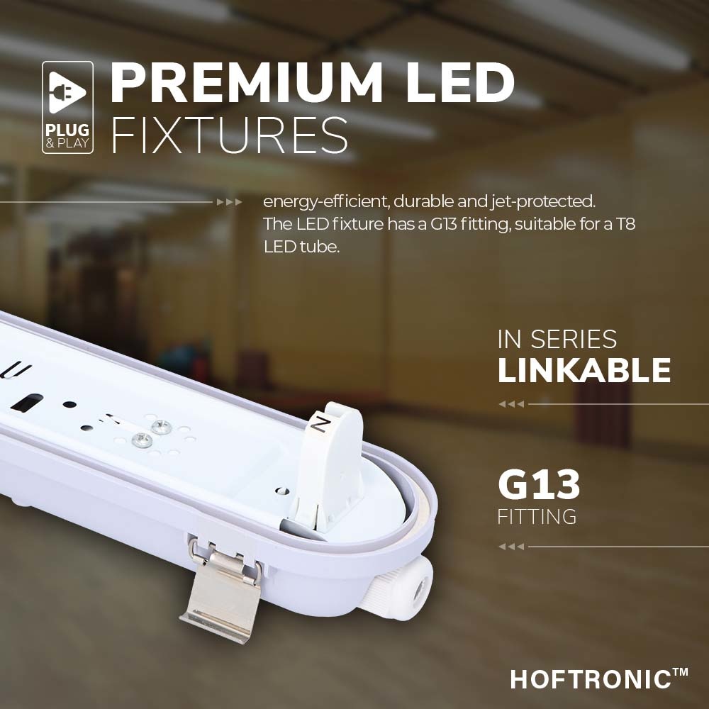 Deze LED IP65 waterdichte armaturen zijn buitengewoon fijn voor vochtige ruimten en kunnen tevens perfect buiten worden toegepast. Deze armaturen zijn bekwaam voor twee stuks 150 centimeter LED buizen. Met deze armaturen bespaart u tot wel 80% op uw energiekosten ten opzichte van uw klassieke verlichting. De installatie is erg simpelweg. Dat betekent dat er geen installateur nodig is voor de overstap op LED. Deze waterdichte armaturen diversifiëren uw traditionele armaturen.