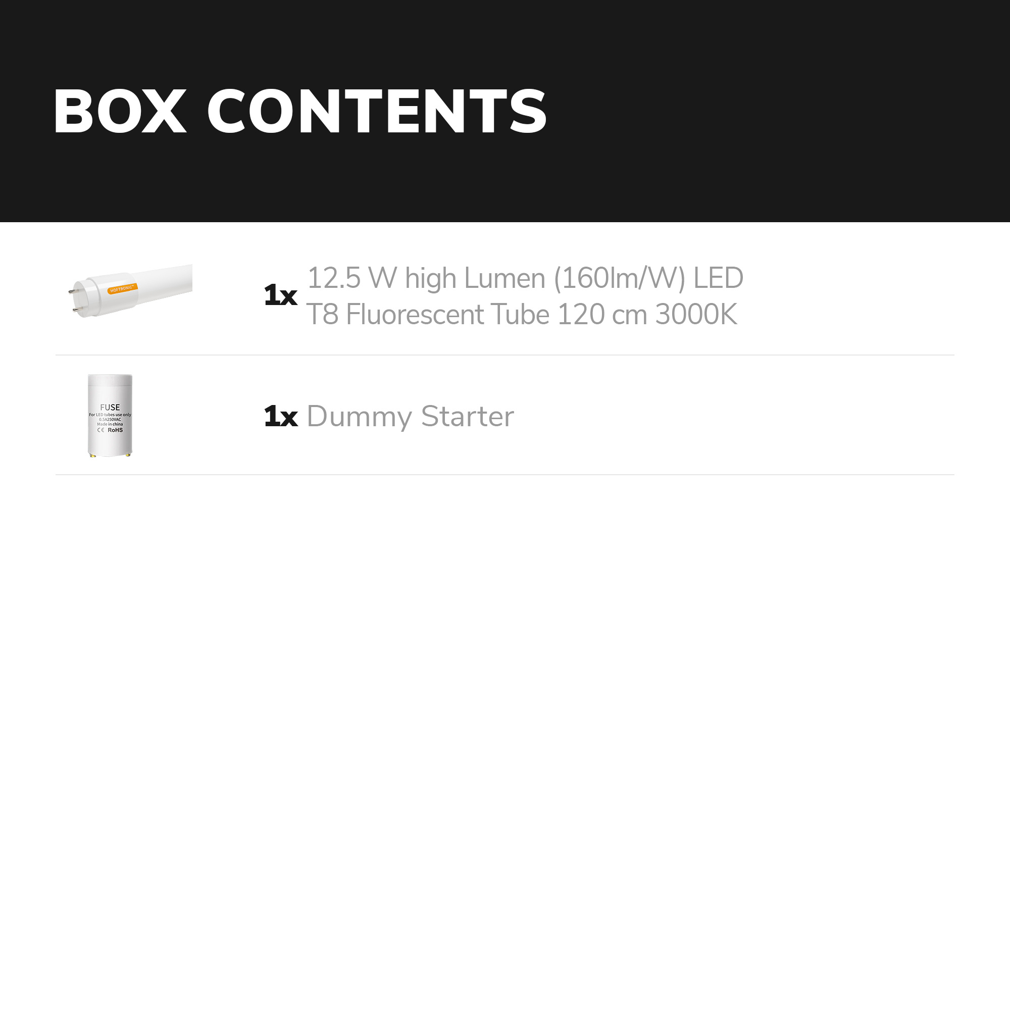 Door de meegeleverde dummy starter kun je deze LED TL buis meteen aansluiten op een traditioneel T8 armatuur. Je hebt hier uiteenlopende installatiemogelijkheden voor. Deze hebben we uitgelegd in onze blog: TL-verlichting afwisselen door LED buizen. N.B. Bij het aansluiten van de TL LED buis op een Hoftronic armatuur heb je geen dummy starter meer nodig.