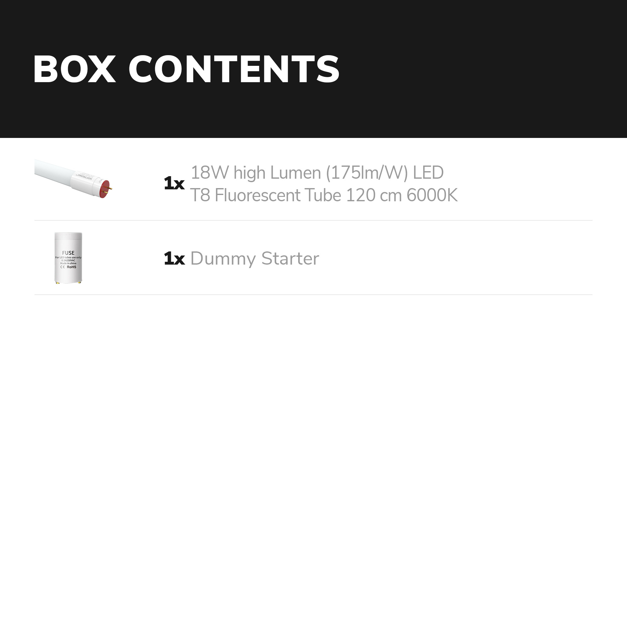 Door de meegeleverde dummy starter kun je deze LED TL buis meteen aansluiten op een traditioneel T8 armatuur. Je hebt hier uiteenlopende installatiemogelijkheden voor. Deze hebben we uitgelegd in onze blog: TL Verlichting vervangen voor LED buizen.