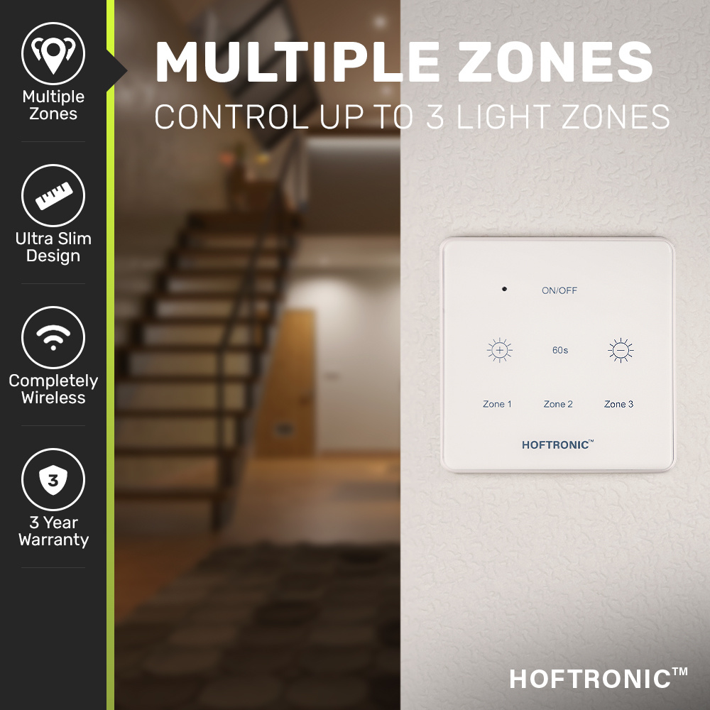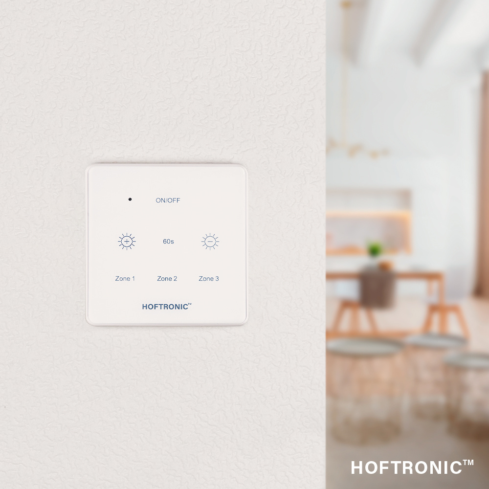Met deze muurdimmer kun je gemakkelijk drie diverse lichtzones bedienen. Bestuur met één paneel de lichten aan in de woonkamer, eethoek en keuken.