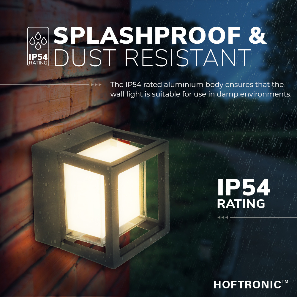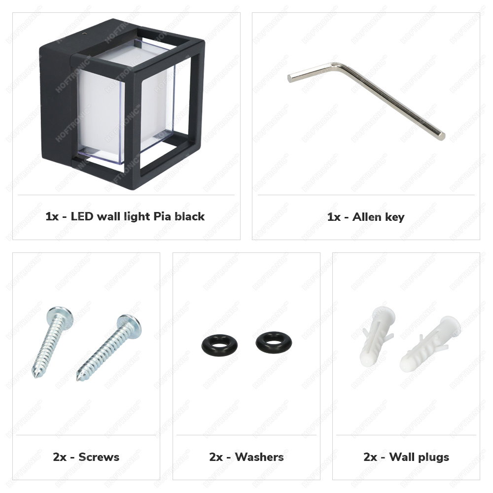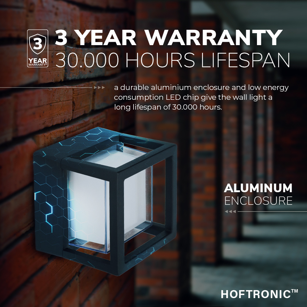 Deze robuuste LED wandlamp is zo uitgevoerd dat het armatuur van voren open is en je de lamp van alle aanzichten kunt bewonderen. Hierdoor creëer je een ruimtelijk uitstraling. De muurlamp is juist voor vochtige plekken dankzij de IP54-waarde, wat inhoudt dat de lamp resistent is tegen spatwater. Pia kan zowel buiten als thuis toepasbaar zijn. Met deze LED wandlamp creëer je een chique uitstraling, voor bijvoorbeeld in de woonkamer of buiten aan het tuinhuisje. De lamp heeft een compact formaat 110x110x103 mm. Dankzij het compacte afmetingen is de wandlamp eenvoudig te vertrekken waar je maar wilt, en hoort bij het vrijwel in iedere omgeving. Het armatuur is ontwikkeld van zwart aluminium, het equipage is zo onderhoudsvriendelijk dat je er jarenlang geen omkijken naar hebt.