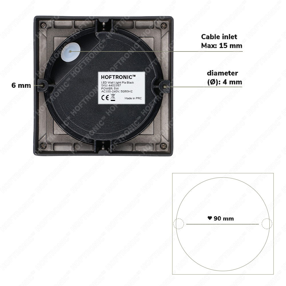 HOFTRONIC LED Wandlamp Pia zwart 6 Watt 3000K IP54