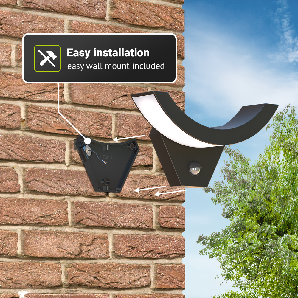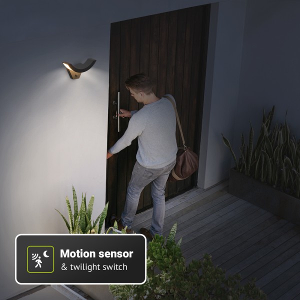 De Leeds LED wandlamp met bewegingssensor en schemersensor is een mooie, praktische wandlamp met een lichtsterkte van maar liefst 780 lumen die je op diverse vertrekken kunt monteren. Door de ingebouwde bewegingssensor en schemersensor schakelt de lamp automatisch aan wanneer het ‘s avonds donkerder wordt of wanneer de sensor een beweging detecteert. Het schemer-inschakelniveau en de tijdsduur zijn hierbij naar wens in te stellen. De wandlamp met sensor geeft geniet licht om een plek zoals je oprit op carport goed te van licht voorzien. Dankzij de LED-technologie verbruikt de lamp slechts 10 watt, wat niet alleen extreem is voor het milieu maar bovendien voor je portemonnee! De LED wandlamp met sensor geeft de wandlamp een warm wit licht van 3000K. Door de IP54-beschermingsklasse is de lamp bestand tegen stof, waterstralen en opspattend water en kun je hem het hele jaar door buiten laten hangen, zelfs in regen sneeuw.