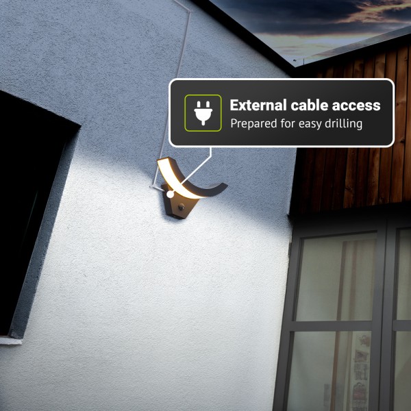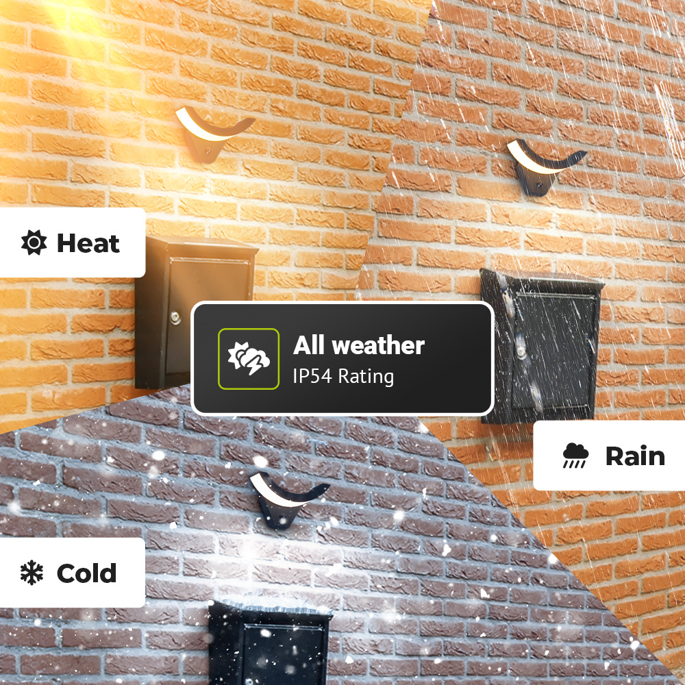 Door de IP54-waterdichtheid kun je de lamp met een gerust hart het hele jaar door buiten laten hangen, zelfs als het regent of sneeuwt. Het is een overmatige sensor-lamp om bij de voordeur, de oprit of aan weerzijden van de garagepoort te hangen. Daarnaast kun je hem bovendien als wandlamp gebruiken bij het looppad langs een schuur, aan de schutting in je tuin en nog voldoende meer.