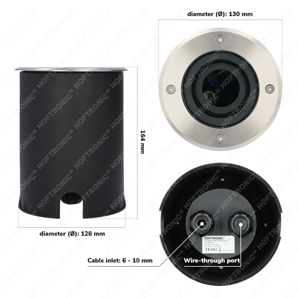 Heb je weinig ervaring met het installeren van verlichting of grondspots? Dan hoef je je geen zorgen te maken: de montage is heel aangenaam. De spot zelf heeft een afmeting van Ø 130 x 160 x 128 millimeter. Je hebt hierbij ook geen transformator voor nodig. Het aansluiten van de tuinspots is nu een fluitje van een cent! De kabel welke je kan utliseren bij het aansluiten is onze Xtrem kabel speciaal voor beneden de aarde.
