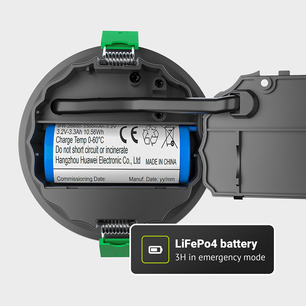 Als de stroom uitvalt en de verlichting niet meer werkt, hoef je je dankzij deze noodverlichting geen waken te maken. De Locus is uitgerust met een goede LiFePO4 3.2V 3300mAh-backup-batterij die tot wel 3 uur kan branden. Deze batterij is binnen 24 uren volmaakt opgeladen. De noodverlichting schakelt automatisch in wanneer de stroom uitvalt. In gevaarlijke situaties zonder stroom zal de noodverlichting op de batterij blijven werken.
