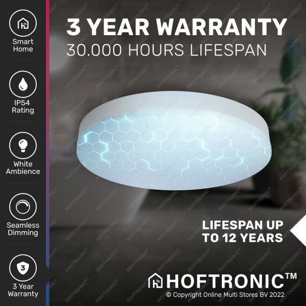 De Lumi is een kwaliteitsproduct van het merk HOFTRONIC. HOFTRONIC is zowel producent als verkoper van LED verlichting. Hierdoor profiteer je altijd van de scherpste koopsom, hoogste kwaliteit en belangrijkste garantievoorwaarden. Op deze Lumi plafondlamp ontvang je dan tevens drie jaar garantie. Defecten worden in deze drie jaar gratis opgelost. Kopen met uitsluiting van waken.