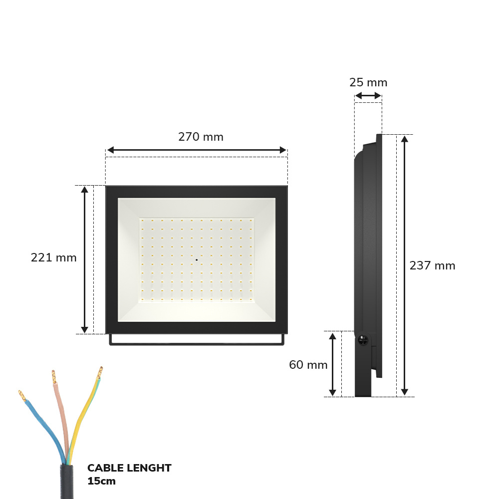 Deze professionele Lumos LED breedstraler is uitgerust met 2835 LED chips. Dit verzekert je van een lange levensduur, hoge lichtopbrengst en een gunstig verbruik. Deze Lumos LED schijnwerper schijnt een daglicht witte lichtkleur van 6500 graden kelvin. De perfecte lichtkleur voor het helder verlichten van parkeergarages, tuinen en magazijnen. Door de hoge IP65 IP-waarde gaat de LED schijnwerper niet defect door vocht en/of stof.