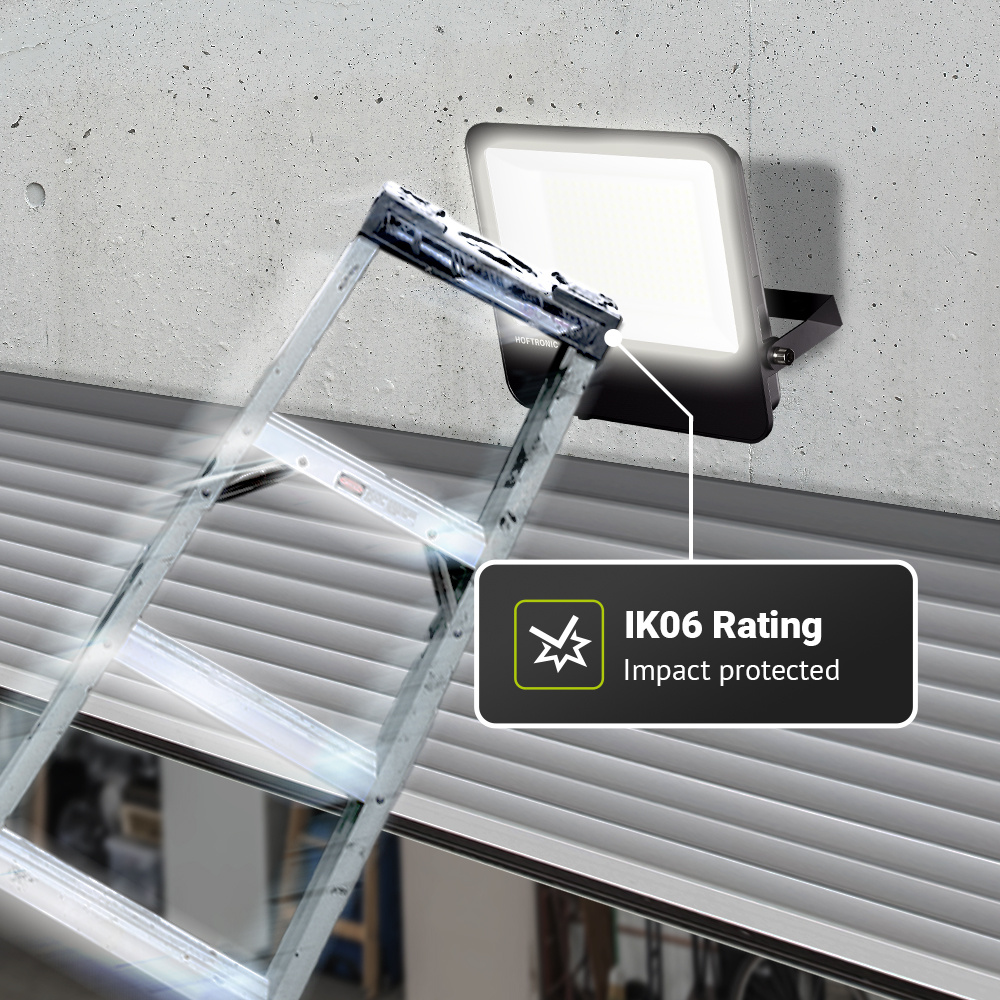 • IK06 veiligheidsglas: Door dit veiligheidsglas kun je met een honkbalknuppel op de breedstraler slaan afgezien van dat het glas barst. Ideaal wanneer je de breedstraler wilt benuttigen als beveiligingsverlichting.