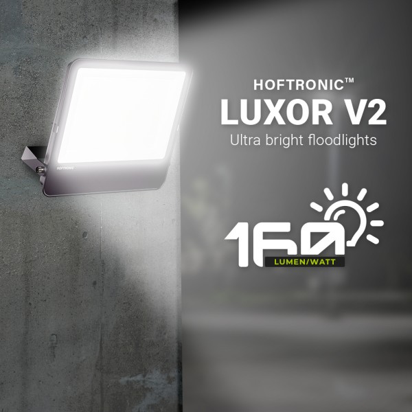 Op zoek naar een zuinige LED schijnwerper, met een lange levensduur en natuurlijke prestaties? Dan kies je voor deze HOFTRONIC Luxor breedstraler. De schijnwerper is uitgerust met de nieuwste technologie LED chips. Hierdoor creëert de breedstraler maar liefst 48000 lumen en verbruikt deze slechts 300 Watt. Door deze hoge efficiëntie van 160 lumen per Watt vervangt deze breedstraler een 3600 Watt halogeen variant. Door het unieke ademende membraan vindt er geen vochtophoping plaats in de lamp. Dit verbetert de levensduur, maar tevens de effectiviteit van de breedstraler. De Luxor LED schijnwerper is voorzien van een anti-glare glas. Hierdoor verblindt de schijnwerper niet wanneer je meteen in de lamp kijkt.