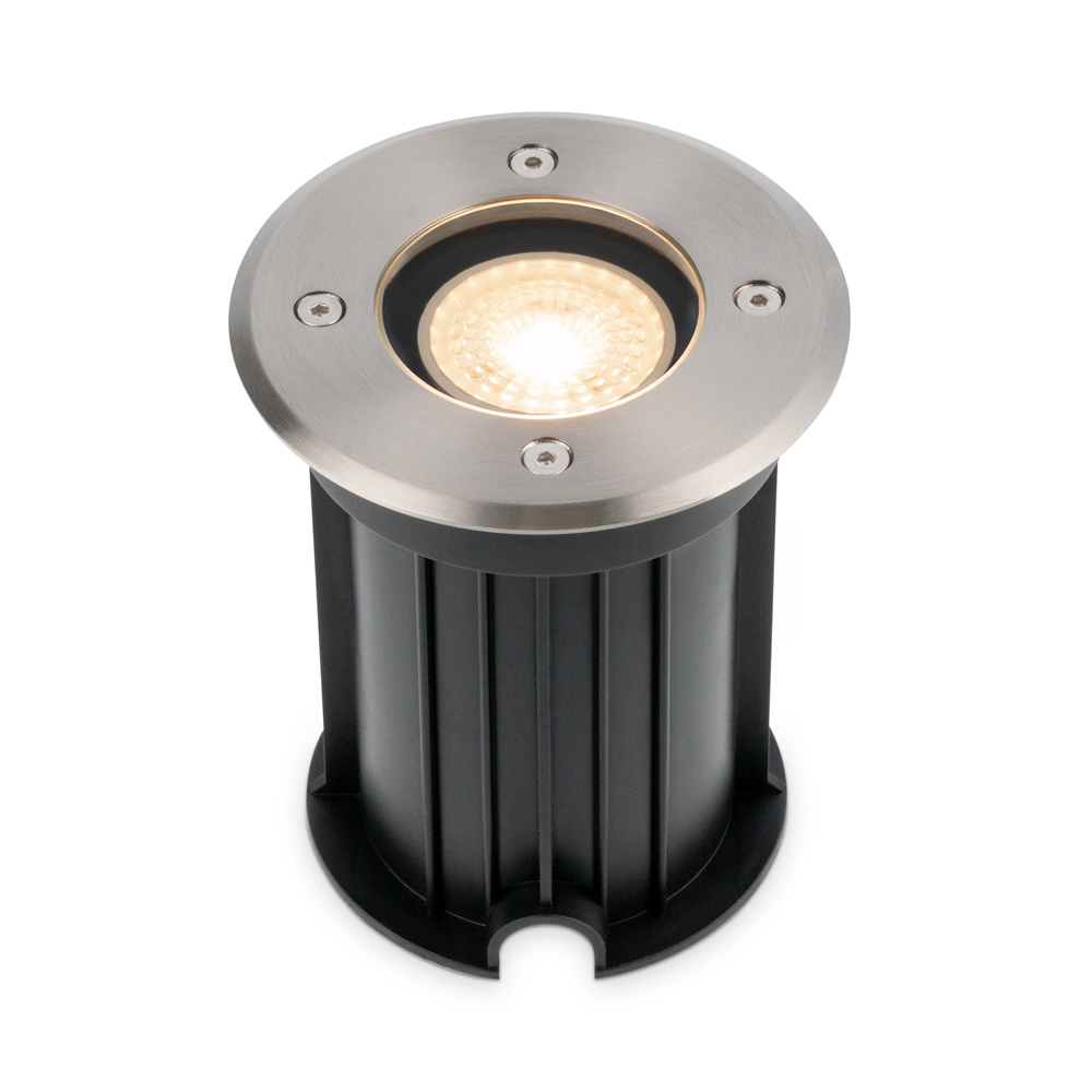 Heb je weinig expertise met het installeren van verlichting of grondspots? Dan hoef je je geen zorgen te maken: de montage is heel genoeglijk. De spot is al voorzien van een GU10 fitting en is reeds aangesloten op een kabel van 30 centimeter lang. De spot zelf heeft een afmetingen van 120 x 120 x 142 mm.