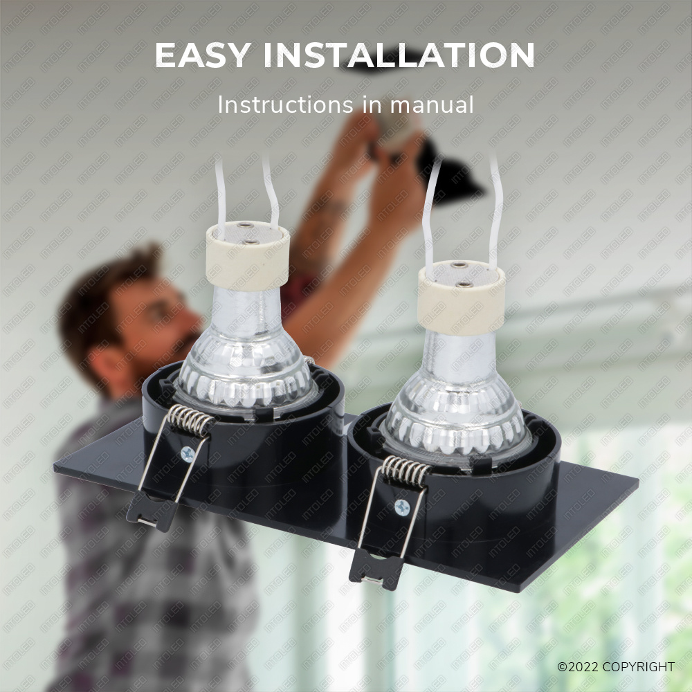 De inbouwspot is voorzien van twee individueel kantelbare spots. U kunt de verlichting instellen voor elk gewenste effect. Door de verschillende lichtstralen kunt u een uiteenlopend palet aan verschillende verlichtingseffecten creëren. De spots kunnen worden aangepast voor een zacht diffuus licht, of voor een regelrechte spotverlichting voor een meer geconcentreerde verlichting. De inbouwspot is gemakkelijk te installeren. U hoeft alleen een gat van het juiste formaat te maken en de spot in te bouwen.