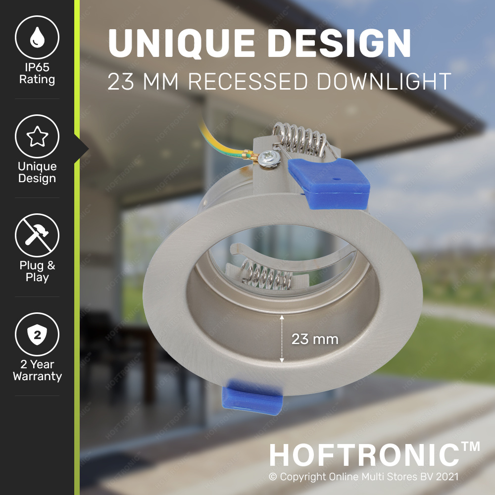 Deze GU10 armatuur is ontworpen van kwalitatieve klasse ijzer, de spot heeft een RVS afwerking welke zorgt voor een gespannen en modieuze virtuositeit. Het GU10 armatuur is voorzien van twee bevestigingsveren waardoor de spot probleemloos en eerdaags bevestigd kan worden in een plafond. Het armatuur is IP65 spatwaterdicht uitgevoerd, hiermee kun je de spot dus naar wens in huis of buiten gebruiken.